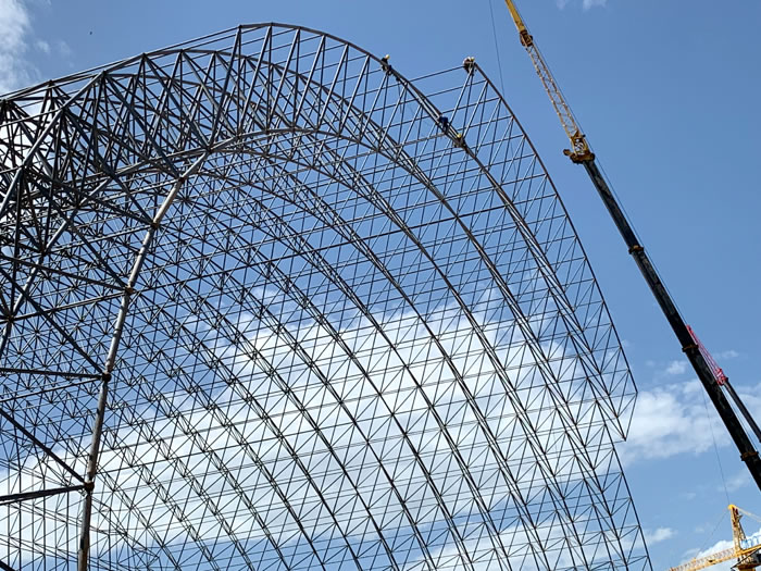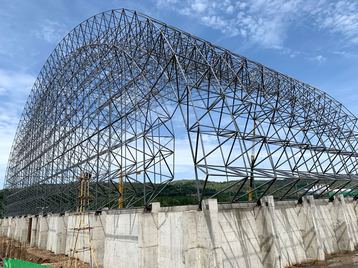 (2)网架加工前应对现场尺寸进行复测,确认无误后方可进行加工、安装;网架制作、运输、安装应遵守《空间网格结构技术规程》JGJ7-2010、《钢网架廊坊螺栓球节点》JG/T 10-2009、《钢网架廊坊螺栓球节点用高强度螺栓》 GB/T 16939-2016、《廊坊钢结构廊坊工程廊坊施工规范》 GB50755-2012、《廊坊钢结构廊坊工程廊坊施工质量验收标准》 GB50205-2020。